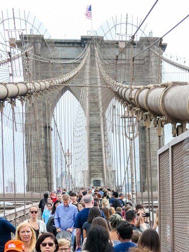 Walking over the Brooklyn Bridge