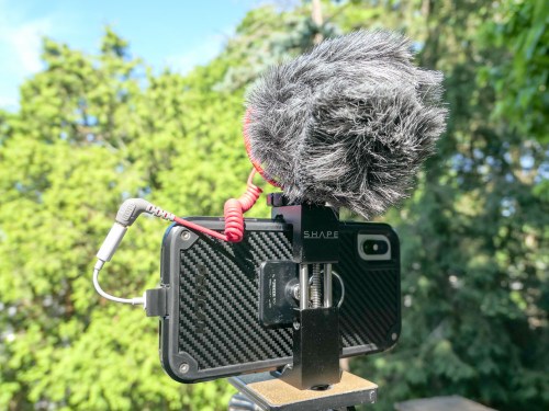 But of course, an iPhone isn’t a DSLR with a cold-shoe mount to easily attach a microphone. So you’ve got to somehow anchor a cold shoe mount to the iPhone…