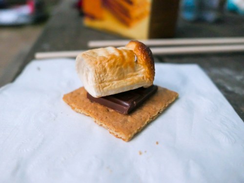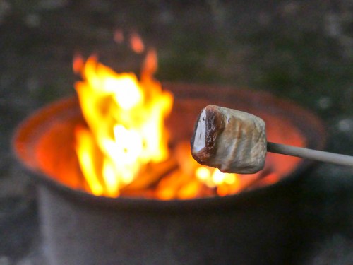 He especially loves staring into a fire after dark and blasting marshmallows with intense heat to create yummy s’mores…