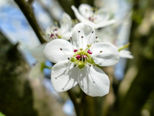 They’ve never born fruit, but they’ve always put on a big show in spring. During the third week of April, hundreds of beautiful little white flowers bloom on the trees.