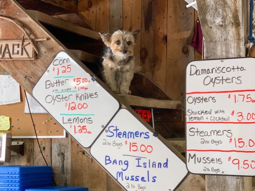This watchful guard appeared on the stairs while we were on line to buy dinner at Langsford Road Lobster and Fish House in Cape Porpoise. I was pleased to capture this little moment, and here are some others I spotted during our week in Maine.
