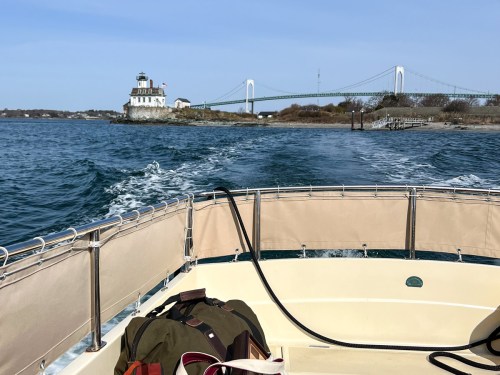 We boarded a little boat out of Fort Adams and were shuttled by Captain Cal to Rose Island, in the direction of the Newport Bridge.