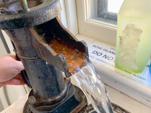 At the kitchen sink, we had to literally pump in rain water that was stored in a huge cistern nearby. (The same 19th-century system was used for the toilet.)