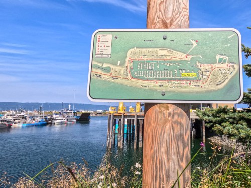 This was our second cycling day, and we biked into Homer (after our van took us most of the way from Seward) and through the Homer “Spit” that extends out into Kachemak Bay. Our hotel (Land’s End Resort) was perfectly located at the end of the Spit. You could also reverse engineer this idea and bike the spit after you settle into Homer.