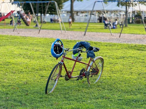 My family and I were taking a walk at Calf Pasture Beach in Norwalk recently, and we passed by this tandem bicycle. Something about it appealed to me. So, I pulled out my iPhone and got the shot. It wasn’t in portrait mode. So, my iPhone couldn’t quickly blur out all the people in the background. But it was easy to do that in post using Adobe Lightroom.