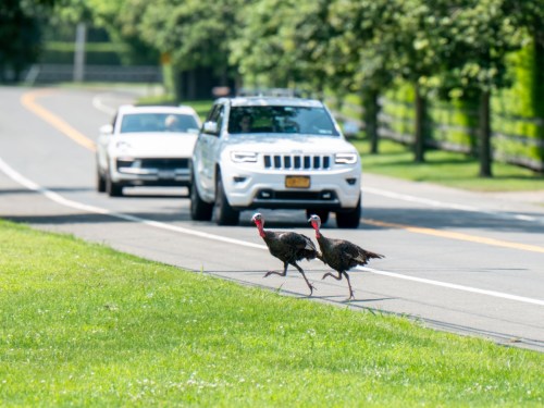 I snapped this shot while on vacation near Orient, NY. I found the two turkeys crossing the road right in front of a car. (Silly turkeys!) I love the moment, but I didn’t like the license plate detail being so prominent. Sure, there are ways to mask it, but the plate would never look totally natural. Here, I avoided the problem entirely by simply narrowing the photo’s focus point and blurring the entire car.