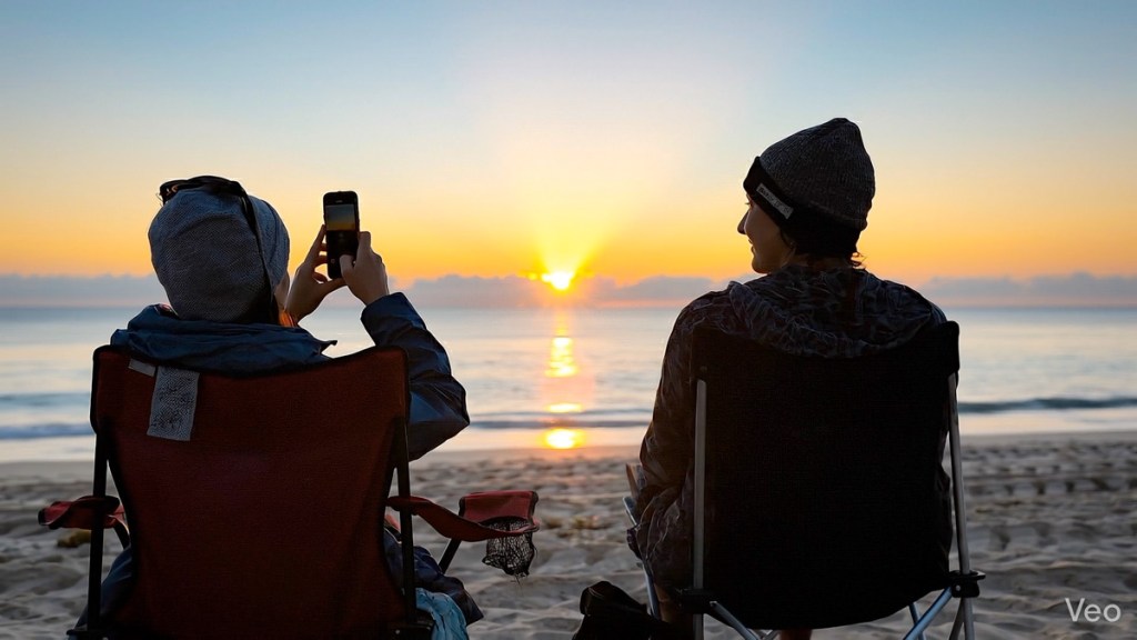 So, I embarked on a little creative exercise. I chose a few silhouette photos I snapped during a sunrise over Delray Beach on our recent Florida vacation and ran them through Google Veo. This process generated 8-second video clips that almost exactly followed the visual elements from my photos. The only exception was Veo created alternate, though similar, people on the beach. (And that’s fine.)