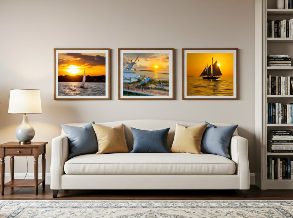 To help reduce my stress and solve for these complexities, I decided to make my photo frames do more of the work. I purchased wall-mountable frames that housed four 5″ x 7” photos each. (I picked up a few 25” x 10” frames from Target.)