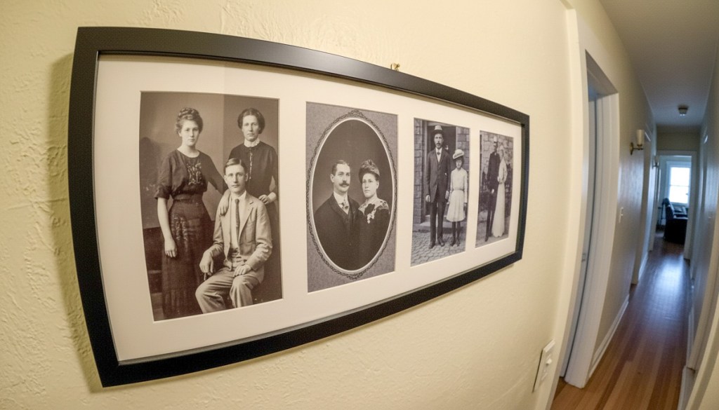 My goal was to create a memory wall/family history gallery featuring photos from past generations in our hallway.