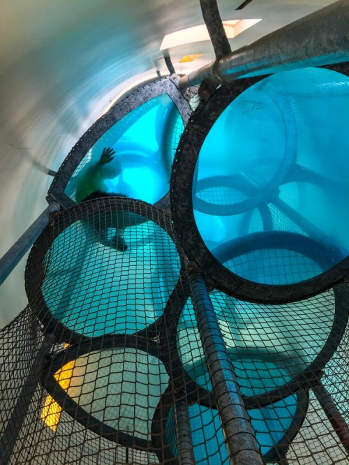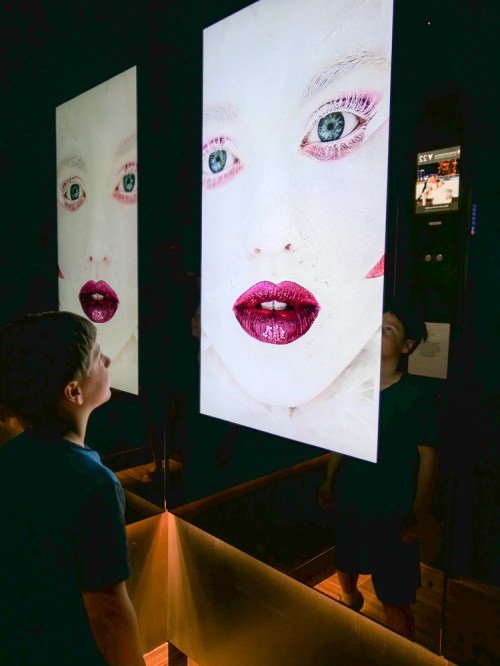 There were short, ‘experimental’ movies showing on vertical LED screens in the elevators. (They weren’t ads.) My son’s response: Intrigued with this unusual opportunity to experience micro ‘screen time.’ No popcorn, though…