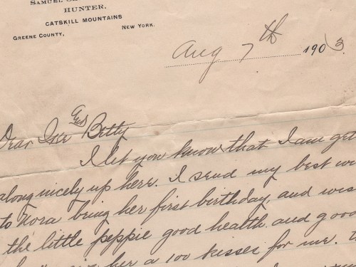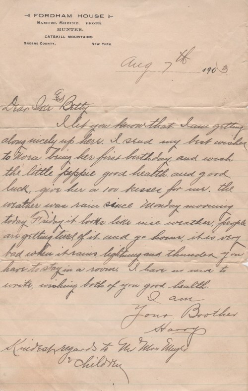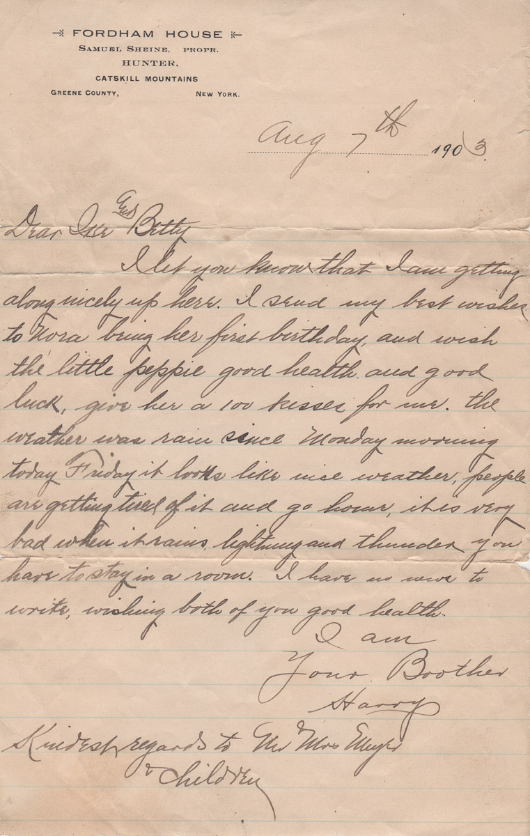 Here’s Harry’s letter to Isaac and his wife when Harry was away in the Catskills during the summer of 1903.