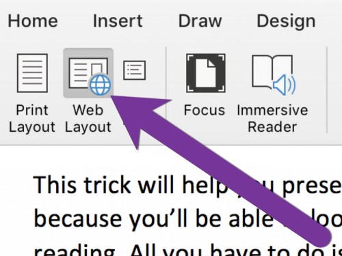 On the left, you’ll see Print Layout and Web Layout. Click Web Layout.