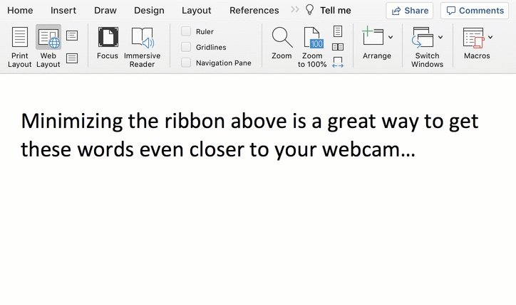 To get your notes even closer to your webcam, collapse Word’s top ribbon.